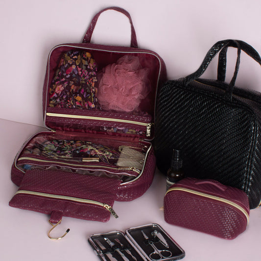 Hanging Cosmetic Bag - Herringbone Plum