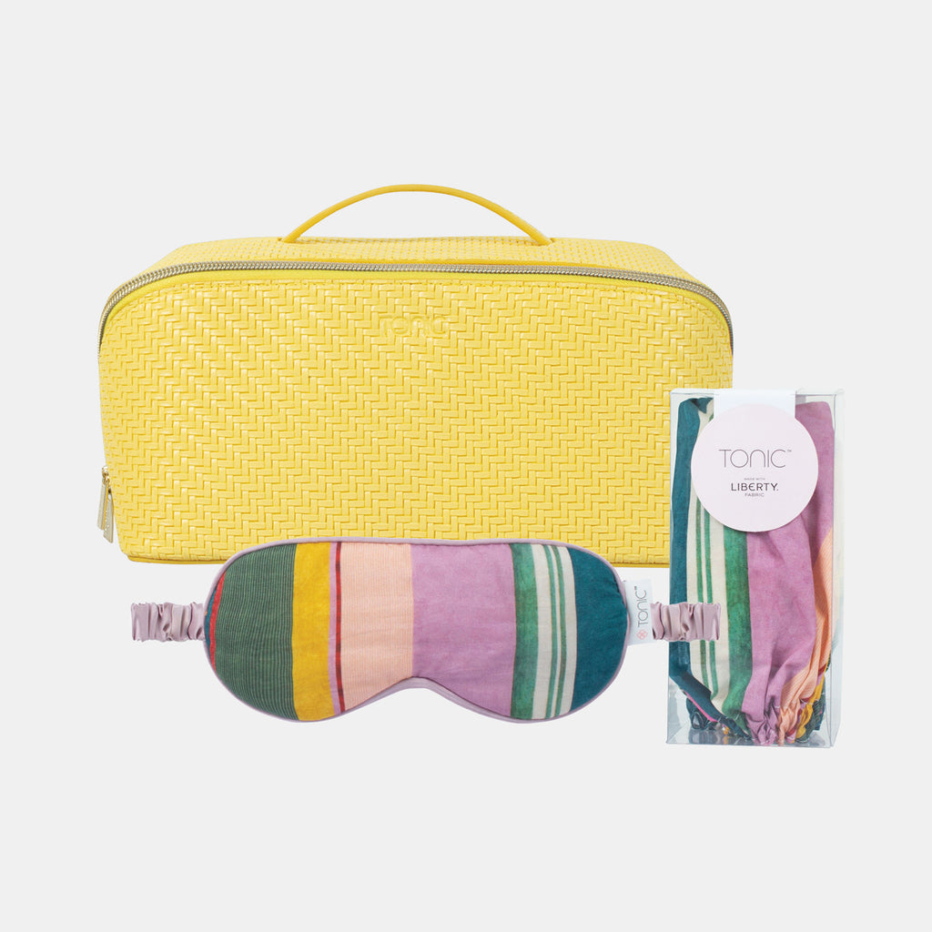 The new Liberty Sandra Springs design is available in your favourite Tonic wellness and travel essentials. The Heat Pillow is backed with a soft pink cotton and filled in Australia with our signature blend of Barley and Lavender and coordinates beautifully with the Eye Mask. A trademarked design, the Tonic Jewellery Cube in Sandra Springs features our unique accordion pockets.