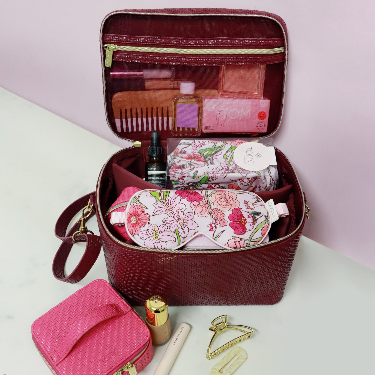 Based on a classic train case design, this travel toiletry case boasts a tall and deep design, allowing you to keep your beauty essentials upright and easily accessible. The internal zipped mesh pocket on the lid keeps smaller toiletries and makeup within reach, while the internal divider helps compartmentalise cosmetic products.