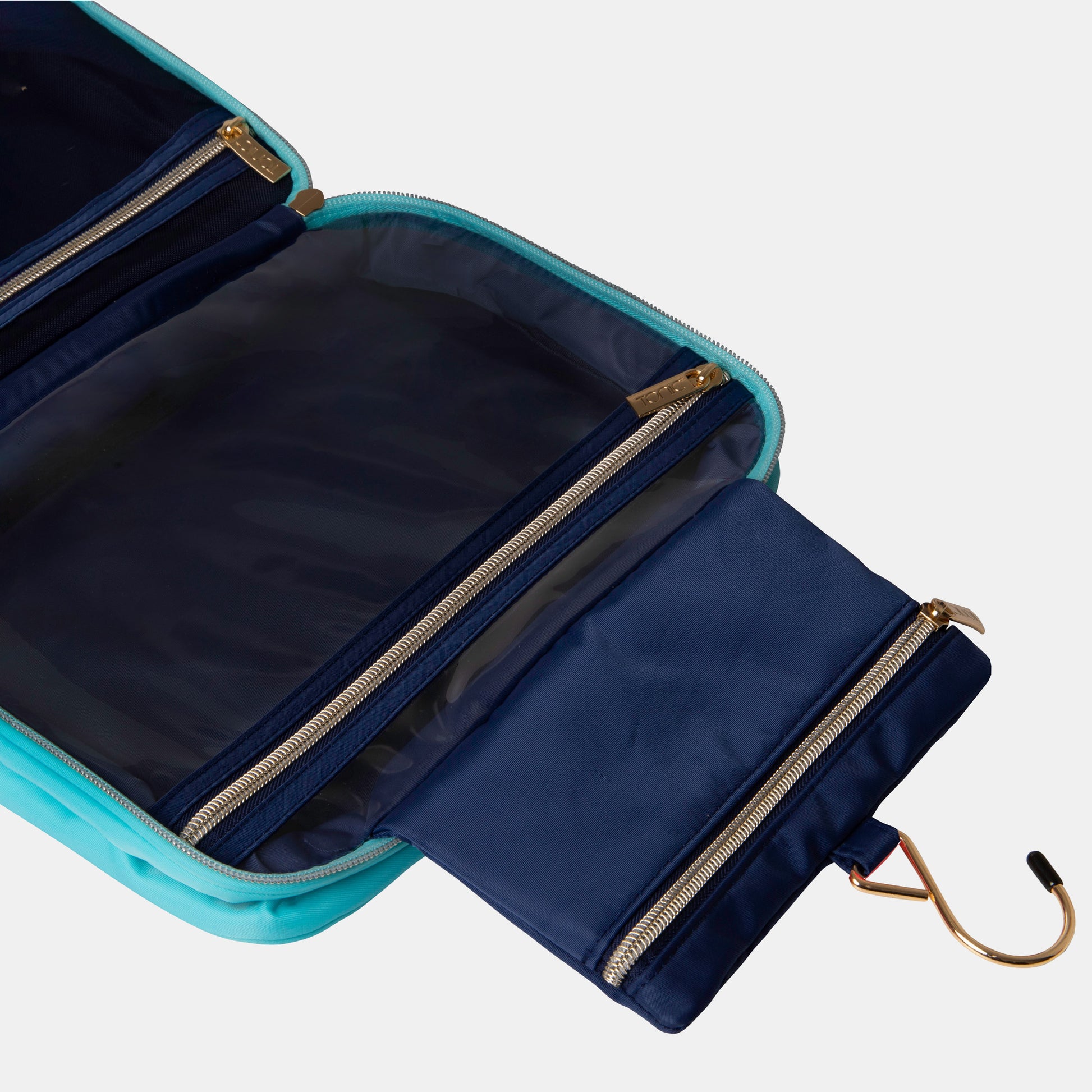 Make a splash on your next vacation with the Hanging Makeup Bag in seaside inspired Aqua.