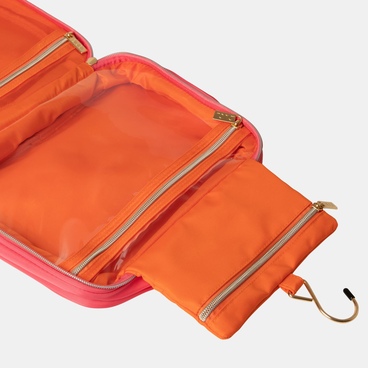Make a splash no matter your destination with the lightweight Hanging Makeup Bag in vibrant Lipstick pink.