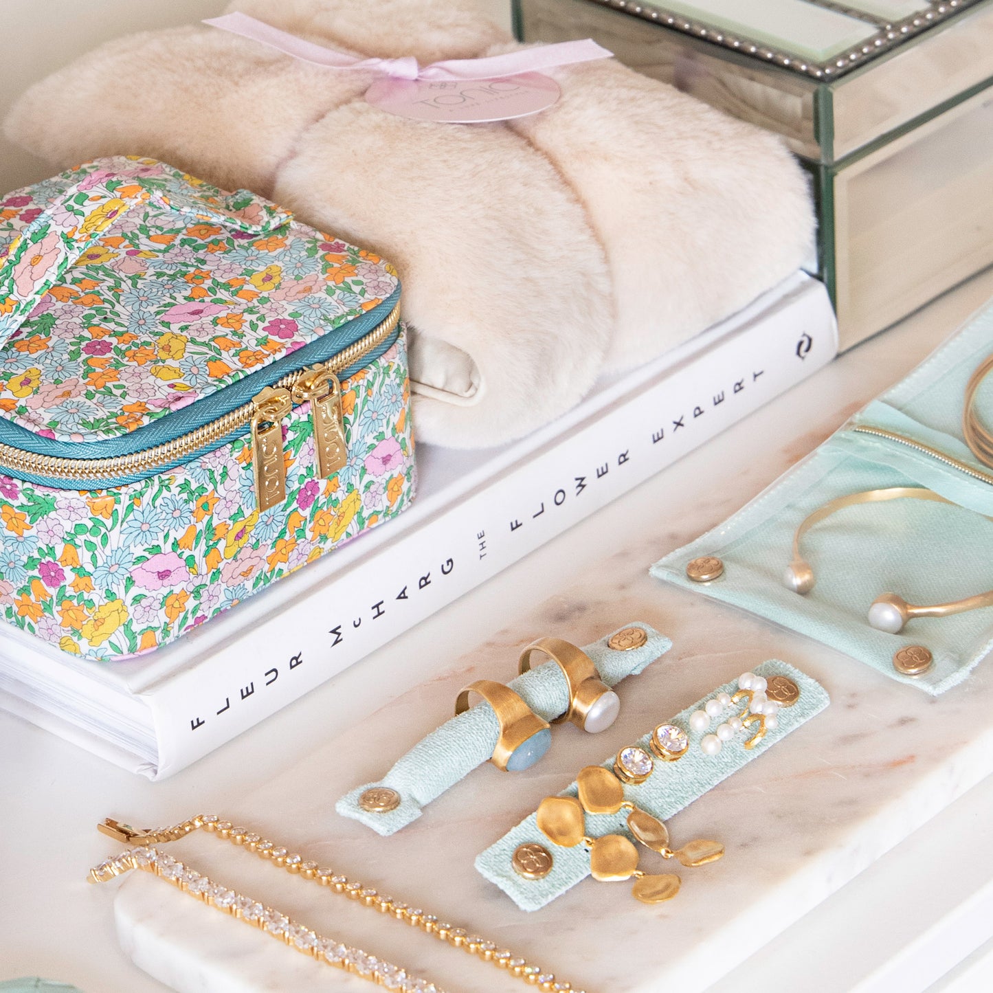 Made with Liberty Fabrics, our ‘Poppy’ Jewellery Cube is a patented design that keeps your cherished pieces safe and free from damage. Luxurious gold zips open to an inner detachable compartment with four individual zipped pockets with clear EVA windows, a ring holder and earring holder. Protect your precious pieces from tangles, scratches, dints, knots, and loss and place them where you can see them while you accessorise your outfit, storing at home, or while travelling. Tonic Jewellery Cubes are designed in Australia with care, quality and thought.