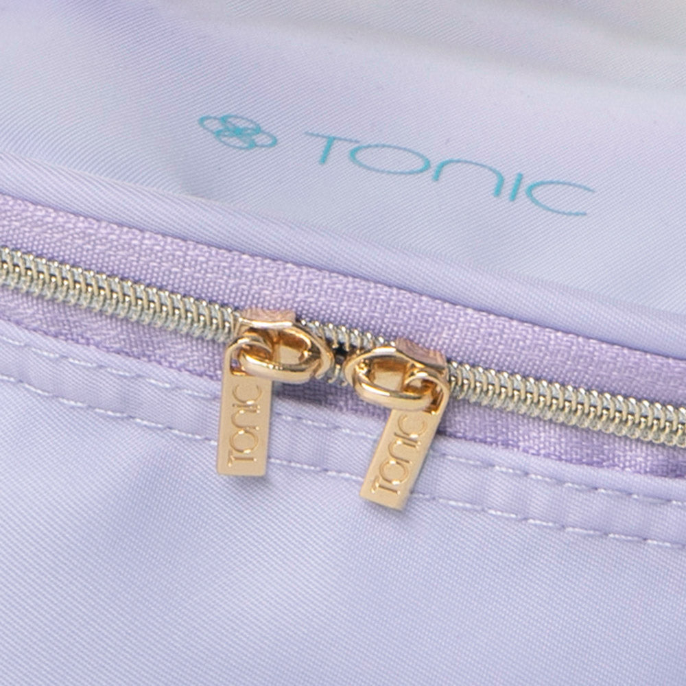 Crafted from recycled nylon and featuring a contrast recycled polyester interior in vibrant Aqua this unique jewellery organiser is finished with a webbing handle embossed with the Tonic logo.