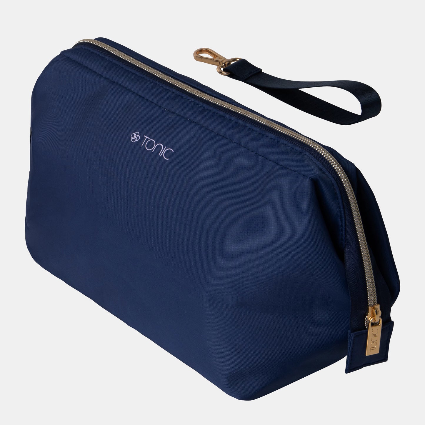 Travel in style with this large cosmetic bag that can also be used as a travel organiser or clutch with the detachable wrist strap in lightweight webbing.