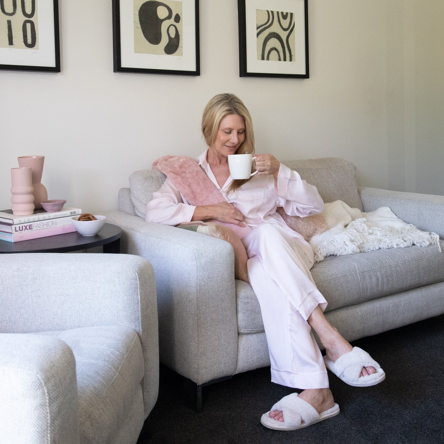 A uniquely designed modern update to a traditional Hot Water Bottle, this long shape is ideal for cuddling up to for extra warmth in cooler months. The long 2-litre capacity natural rubber hot water bottle comes with a cover made from irresistibly soft faux fur in the Dusty Rose shade of pink. Flexible enough to curve across your lap or shoulder, this long hot water bottle can also help soothe aches and pains.