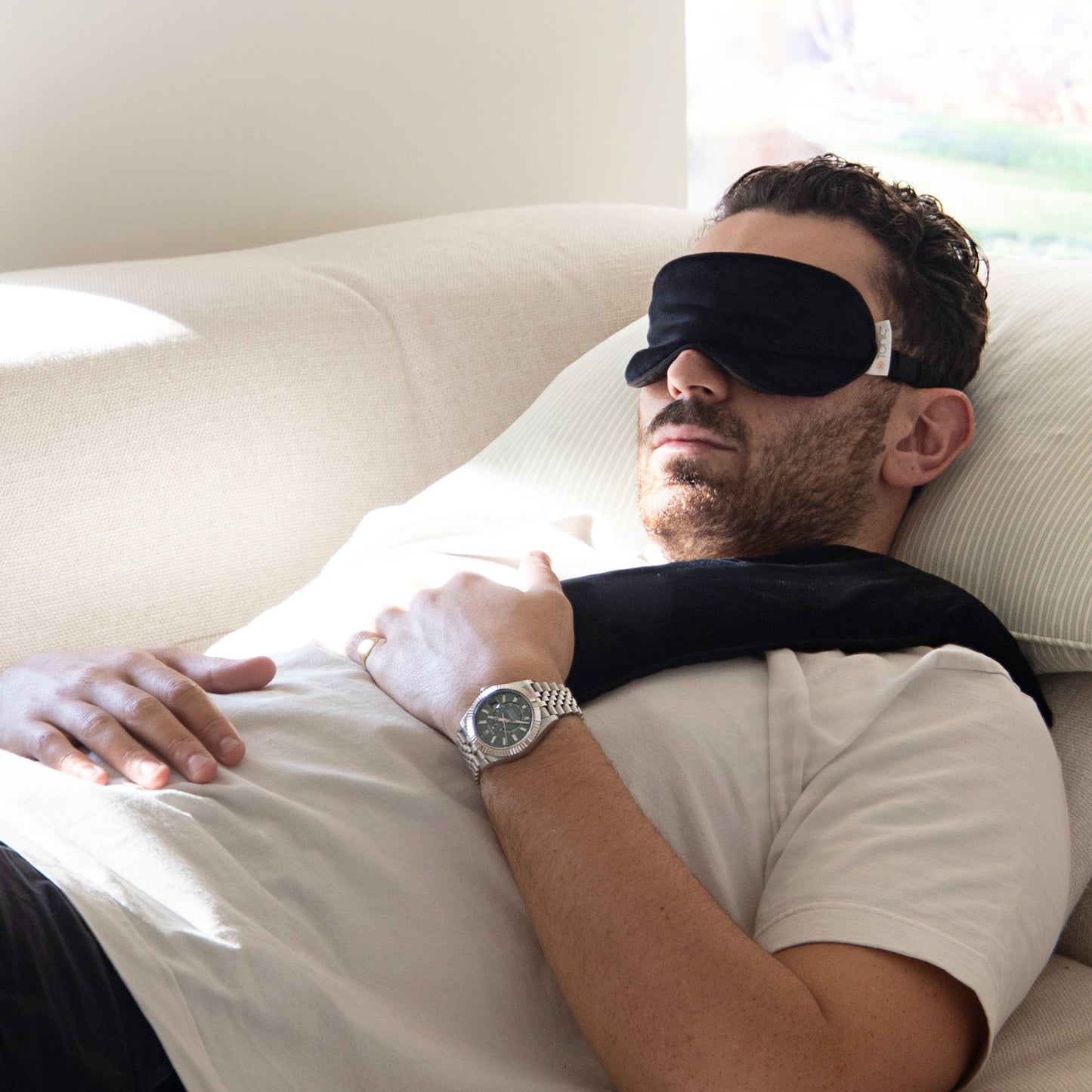Dive into a world of tranquility with our Luxe Velvet Eye Mask in Black. Crafted to eliminate even the faintest glimmer of light, this mask features a soft velvet front, a gentle satin back, and a secure elasticised satin strap that's gentle on your hair and skin. Ideal for travel or easing migraines, headaches, or stress, it creates a cocoon of darkness for undisturbed relaxation and rejuvenation.