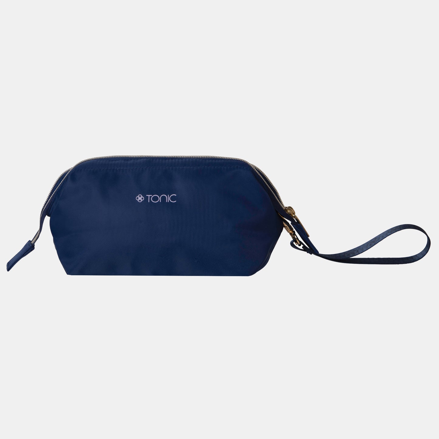 Soft and squashable, this classic Navy makeup bag is perfectly sized for your cosmetic collection. Thoughtfully designed to remain open while in use, the unique wire frame allows you to easily find your makeup items while smaller products are kept safe and secure with three internal pouch pockets.